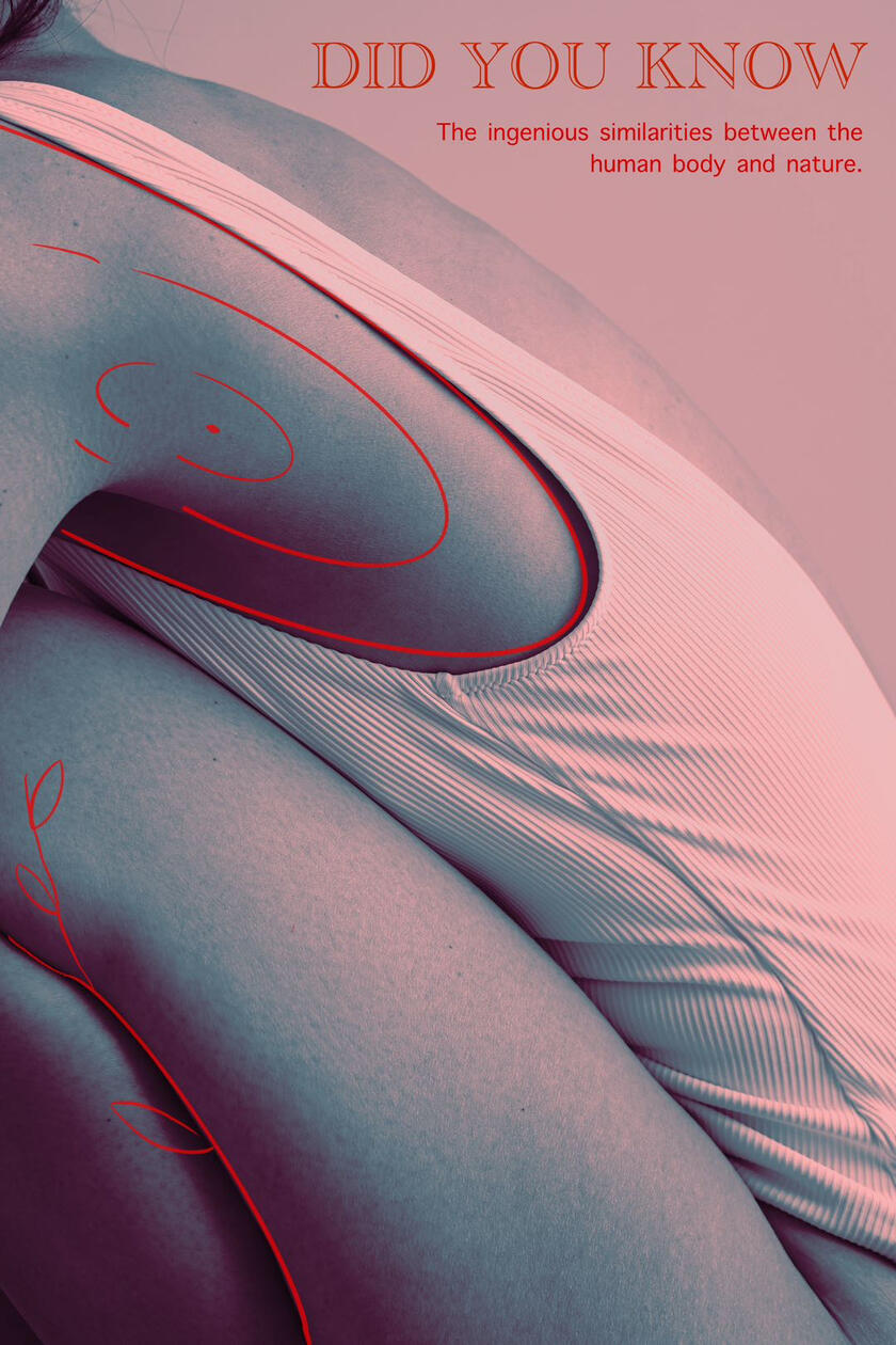 DID YOU KNOW…The ingenious similarities between the human body and nature.The relationship between humanity and nature is rooted in the same origin and shared fate. This contrast compels people to expand their perception and engage with life forms beyond their own bodies.For example, water ripples, mountain structures, and plant veins—these stark and unfamiliar forms of existence push the boundaries of everyday perception.This provides a grander perspective, allowing viewers to experience nature as if it were a part of their own bodies.